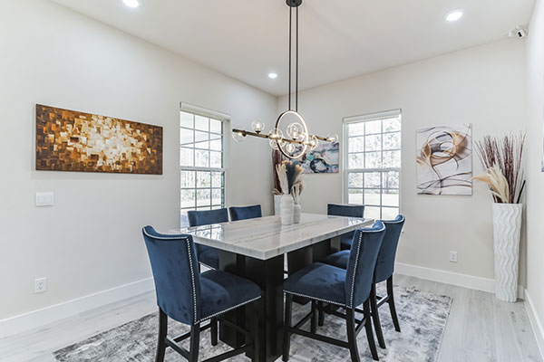 Elegantly designed 2650 Sq Ft 4 bedroom, 3 bathrooms, energy efficient Chelsea Model with an Extended Patio, high ceilings, waterproof vinyl laminate wood floors, gourmet kitchen with granite countertops, breakfast bar, 42 inch “all wood” cabinets, stainless steel appliances.
