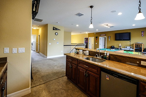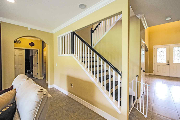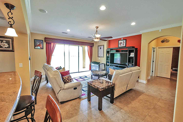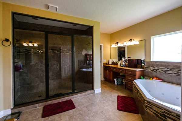 This beautiful 5 bedroom, 3 bath home has 4472 sq. ft of architectural finesse has plenty of room upstairs for a movie theatre, game room, summer kitchen or wet bar. A welcoming foyer with double 8ft Etched Glass doors that leads to the living room and dining areas. Huge luxurious gourmet kitchen with vaulted ceilings, granite counter tops, walk-in pantry, dinette area and breakfast bar. Oversized family room with vaulted ceilings, recessed lighting and triple sliding glass door leading to the oversized covered lanai. Huge master suite, his and hers closets, double granite top vanities, jetted garden tub with separate dual head shower stall and make-up vanity. Oversized 3 car garage. A wonderful home for a large family!